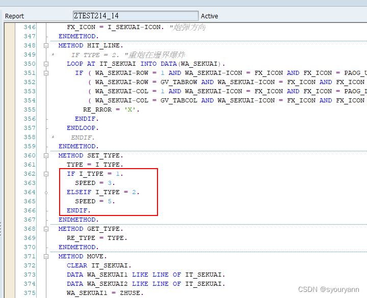 * FREE OBJECT WA_DFTANK.FREE WA_DFTANK.ENDIF.ENDMETHOD.METHOD CONSTRUCTOR.DF_SUM = IM_DRSL. "敌方数量LV_BEGINT = SY-UZEIT. "游戏开始时间* CLEAR: GVT_YOUX.