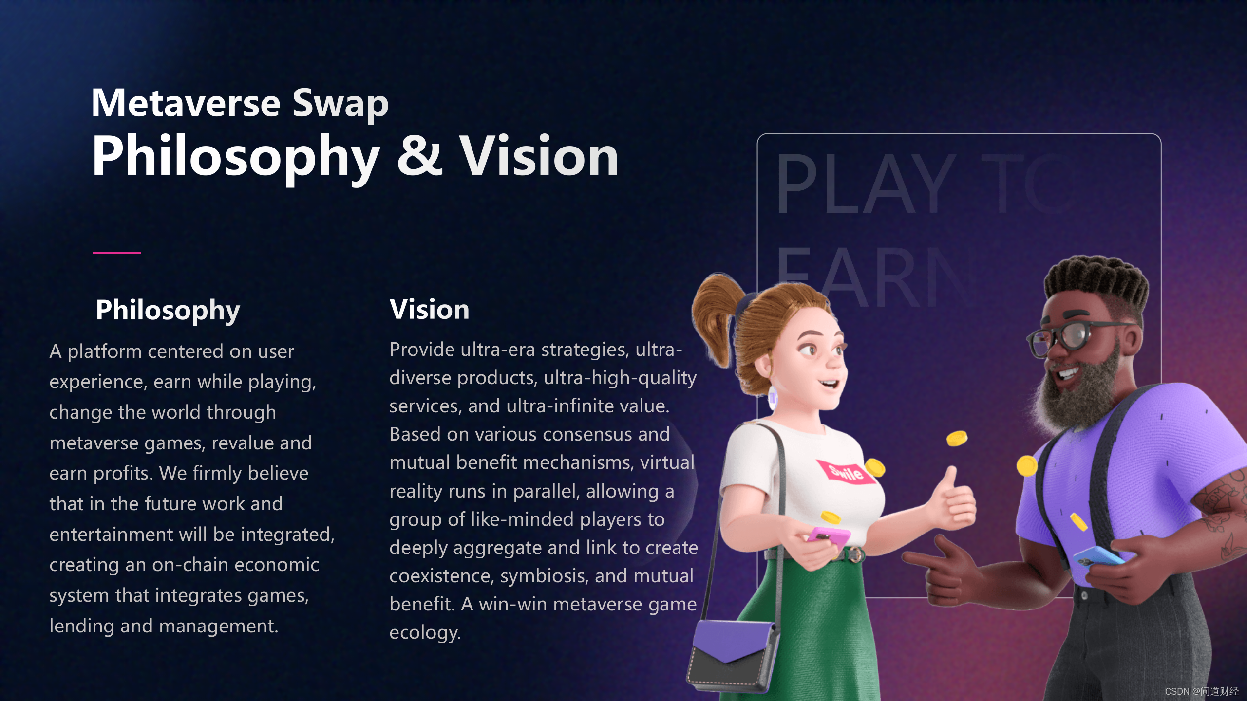 去中心化平台通证的区块链技术解决了金融资产集中控制和管理的问题,在去中心化金融(DeFi)中,Metaverse Swap鼓励开发者开出连接金融模块形成新应用程序的案例,优化游戏与元宇宙体验所需的交易,围绕去中心化市场和游戏资产应用的创新浪潮。
