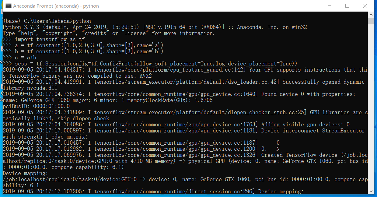 验证是否GPU版本的Tensorflow是否安装成功