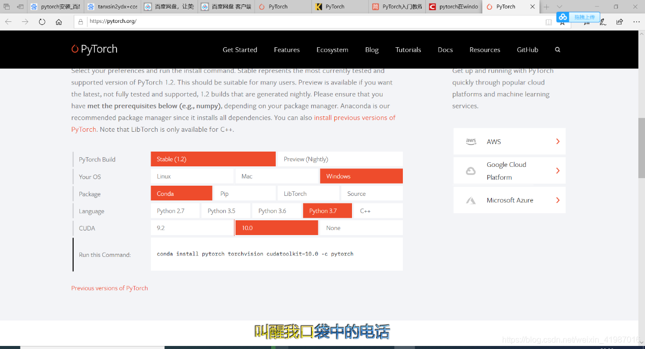 打开网站https://pytorch.org/,选择你需要的即可复制命令