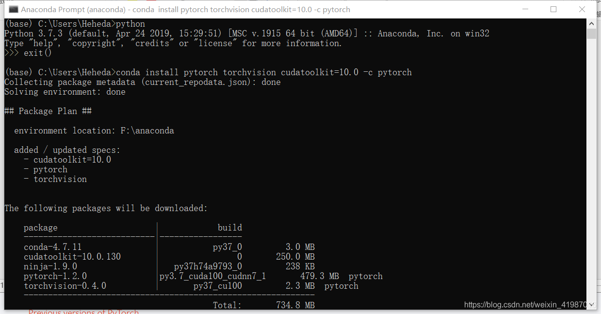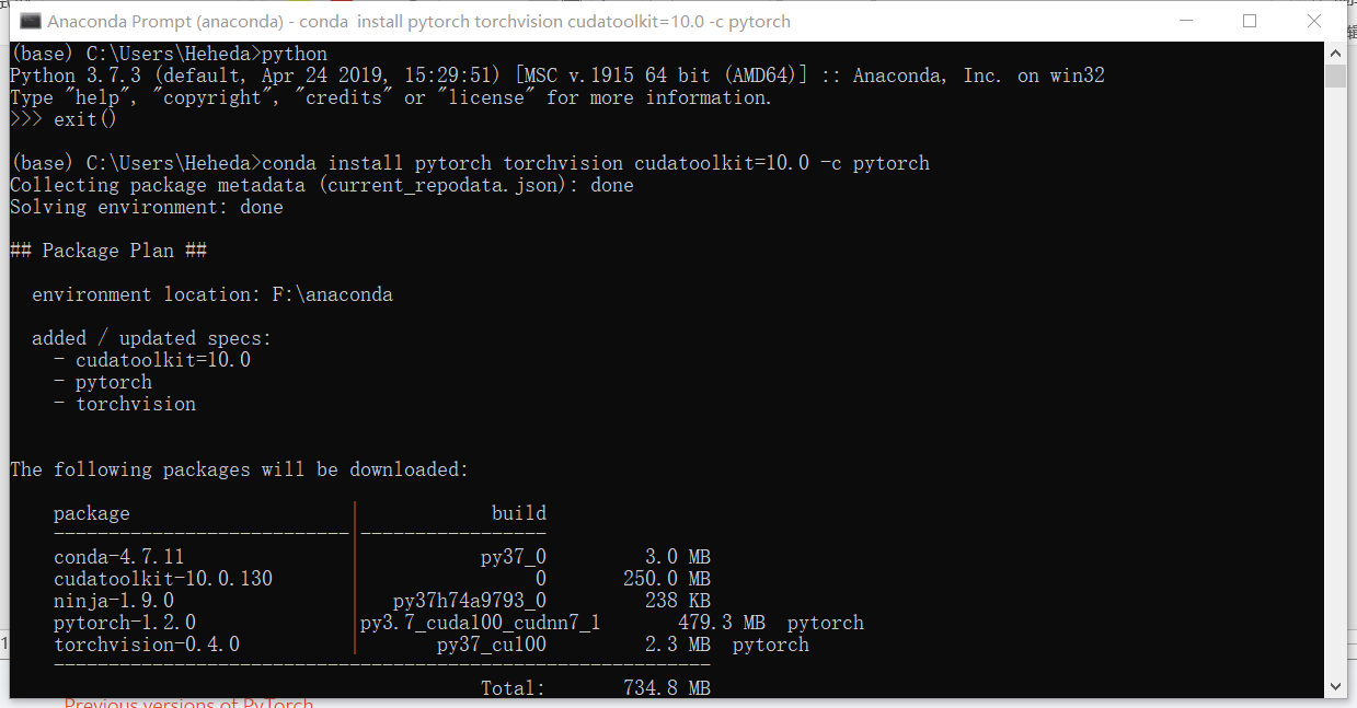 conda install pytorch torchvision cudatoolkit=10.0 -c pytorch