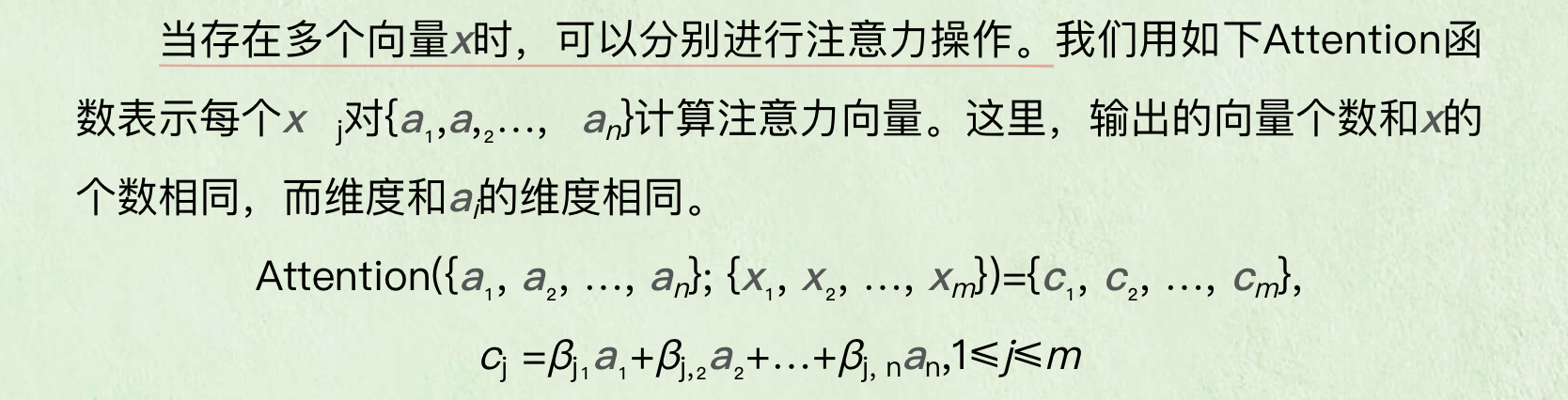 - 被注意的对象,为一组向量{a1,a2,…,n},如输入文本的词向量