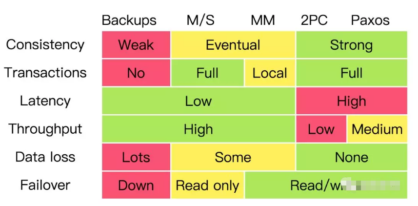 该图对比了不同一致性算法下的事务,性能,错误,延迟的平衡。