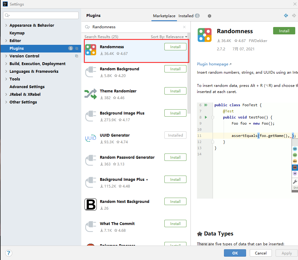 插件下载地址:https://plugins.jetbrains.com/plugin/9836-randomness