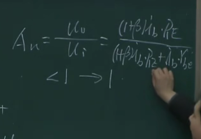 趋近于1是因为re远远大于rbe,没放大也没缩小,属于一个跟随,虽然我电压没变大,但是我功率变大了,属于是放大了功率