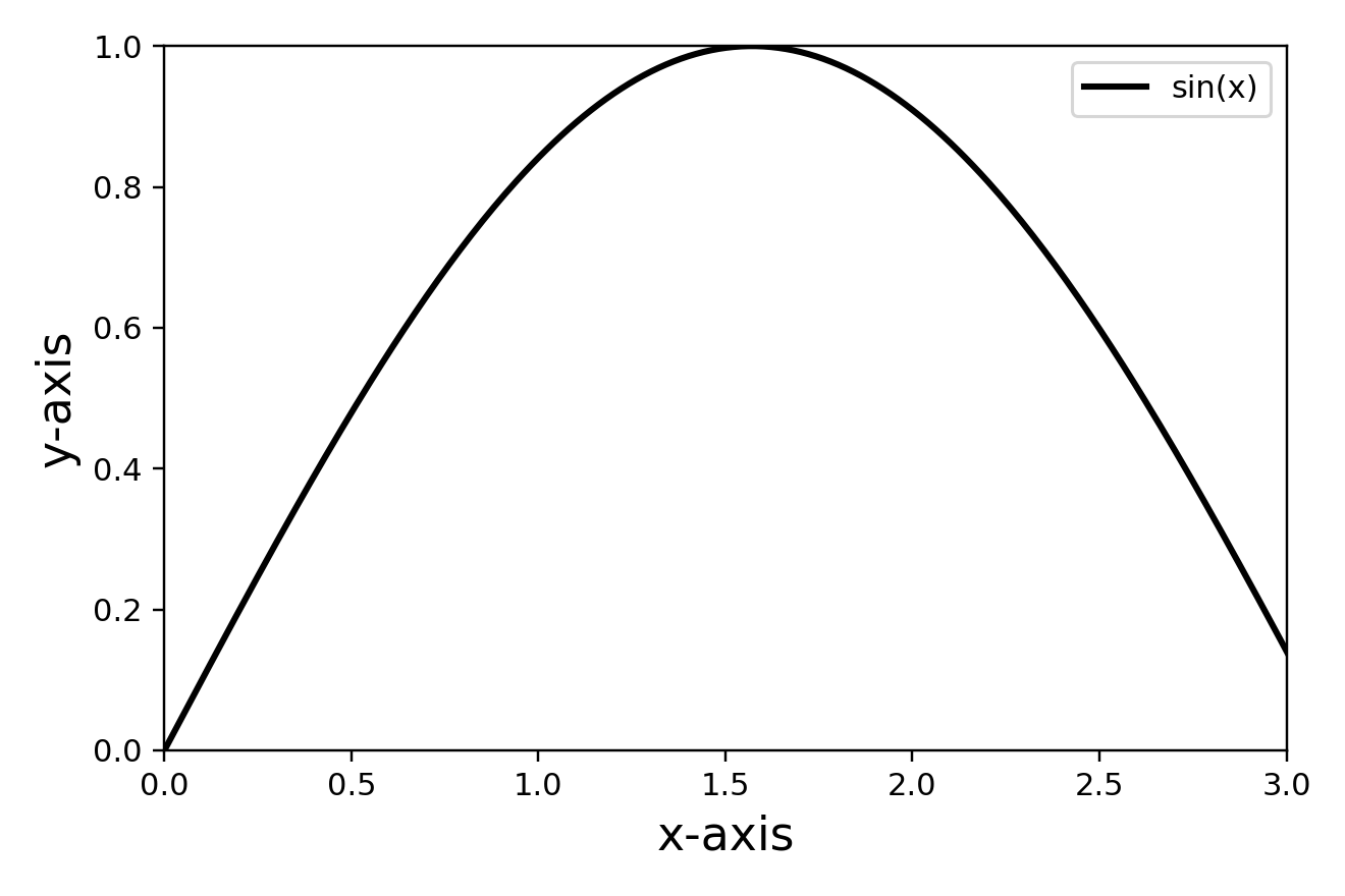 plt.legend(['sin-x'], # 图例显示标签,默认为传入数据 y的label名称loc=1, # loc 一共有10个位置选项,通过给定数字或者是特定字符表述frameon=False, # legend是否需要外边框,True表示有,为默认值fontsize=20, # 文本大小