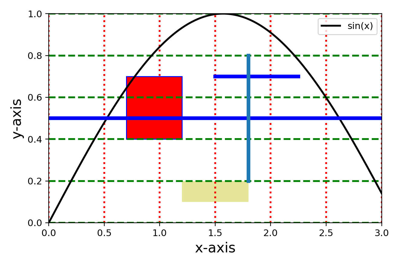 plt.axhspan(ymin=0.1, ymax=0.2, xmin=0.4, xmax=0.6, facecolor='y', alpha=0.4)