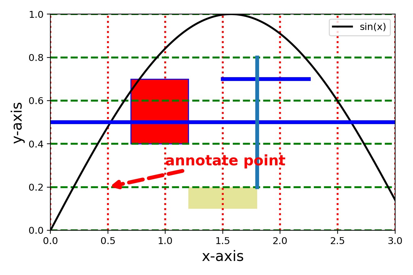 plt.annotate(s='annotate point',xy=(0.5, 0.2), # 需要被标注的位置xytext=(1.0, 0.3), # 标注文本所在的位置weight='bold', # 加粗color='r', # 标注文本颜色size=15, # 标注文本字体大小arrowprops=dict(arrowstyle="->", connectionstyle='arc3',linestyle='--', linewidth=4, color='r'))