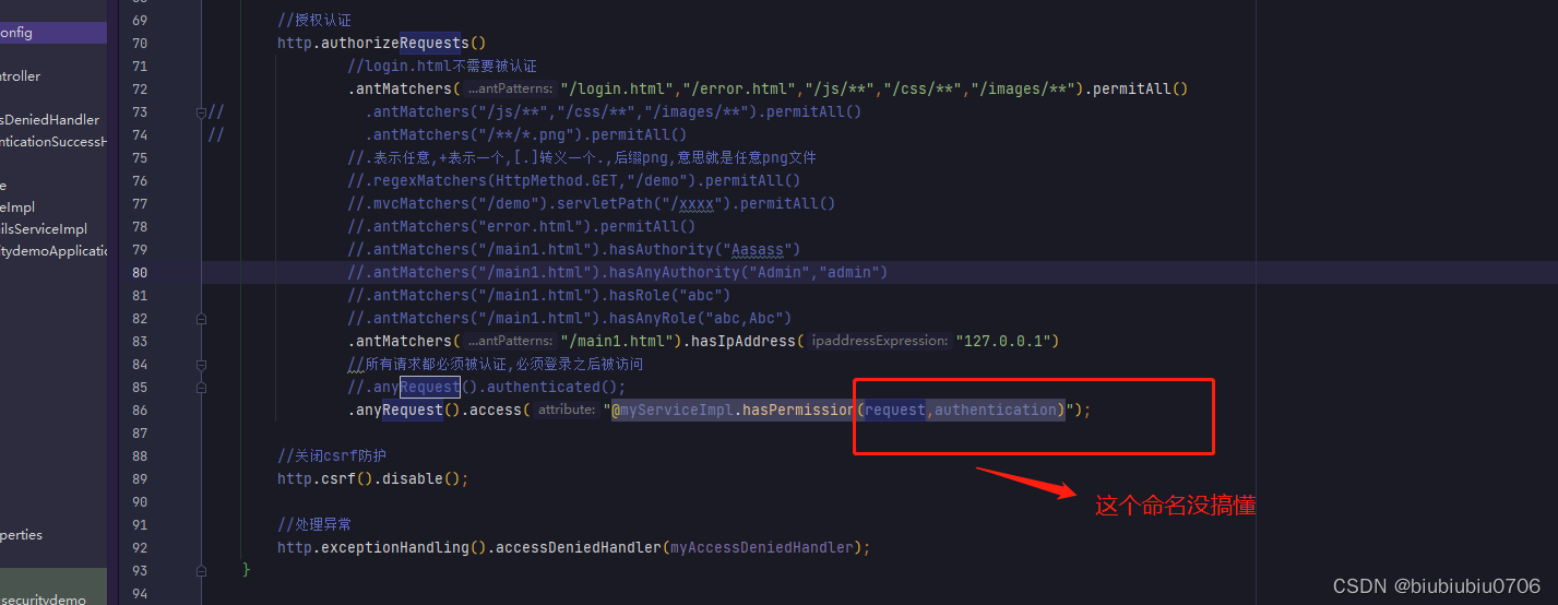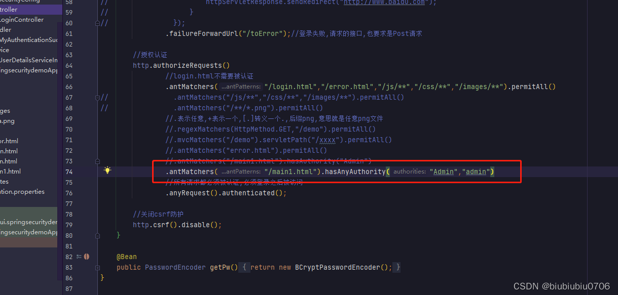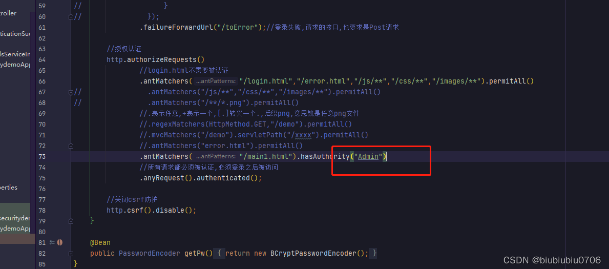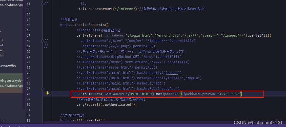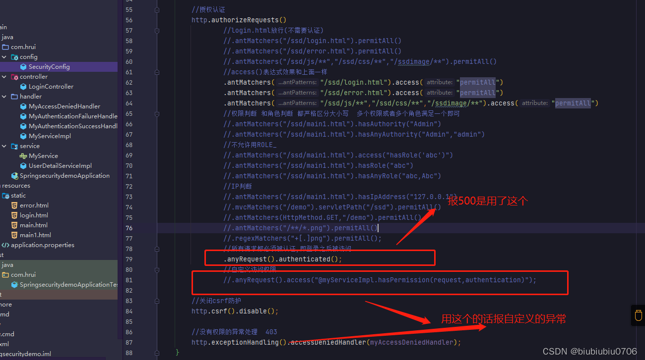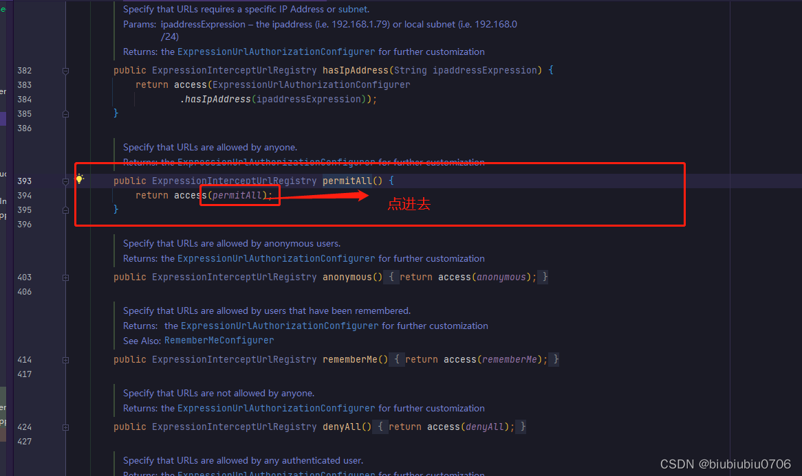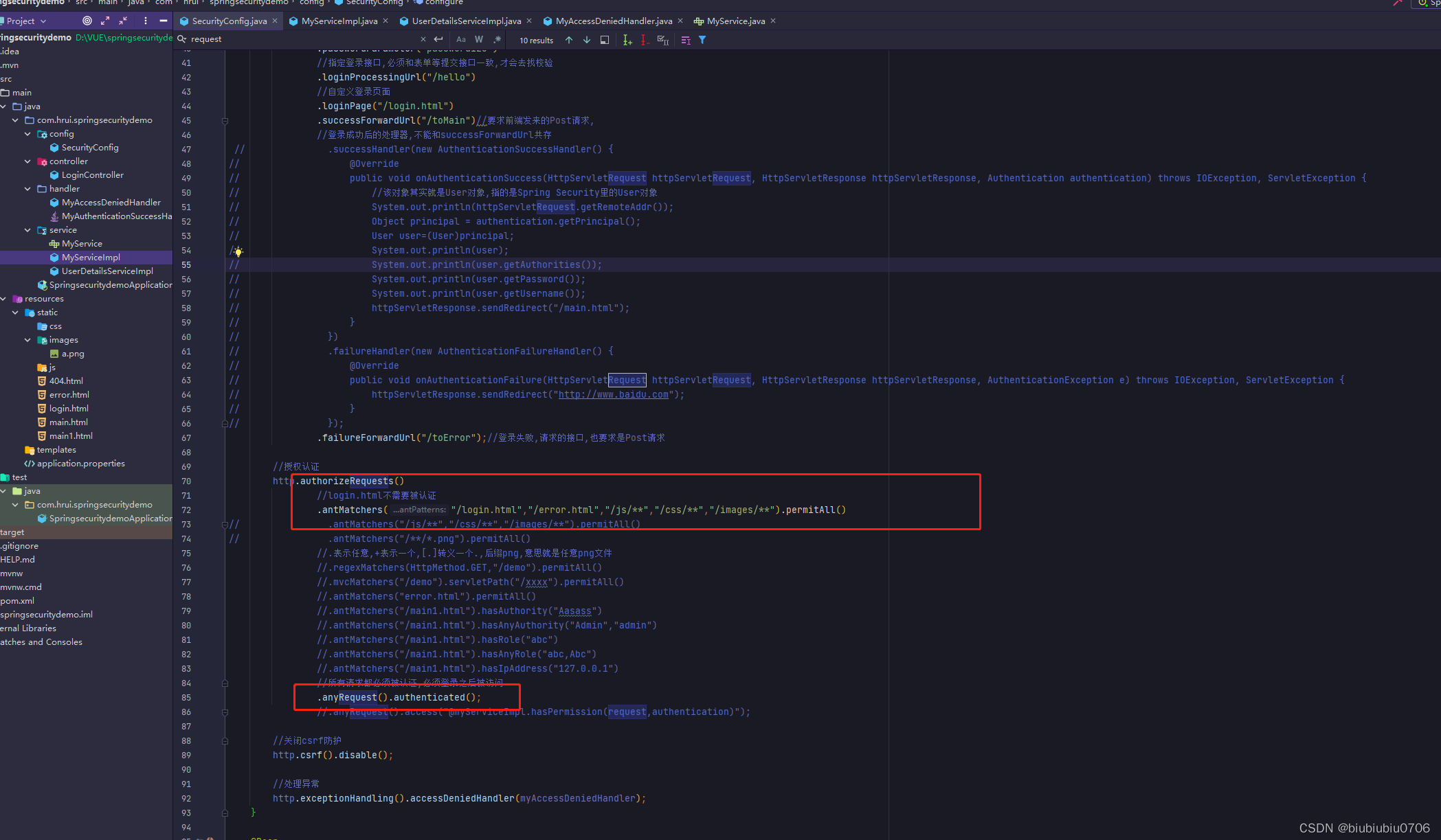 上面anyRequest就是所有请求都需要做什么事 一般都是.anyRequest().authenticated().即都需要被认证,即登录后可以访问