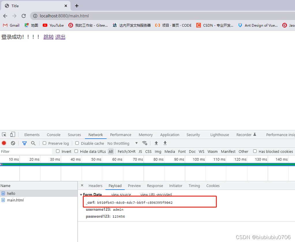 将网页关掉,再次访问localhost:8080/main.html 就不需要再次登录