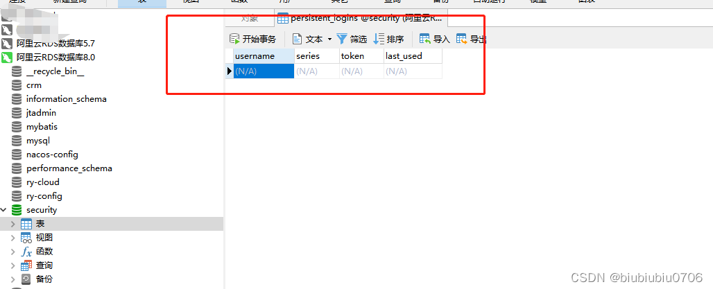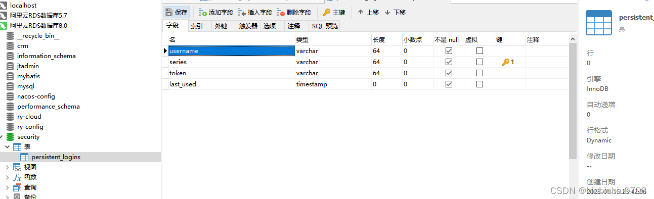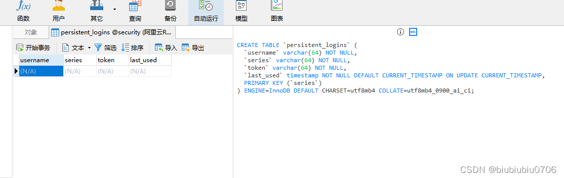 登录成功的话,第一次该表会自动创建 series是主键 记得第二次启动把建表注释掉 不然会报错表已经存在