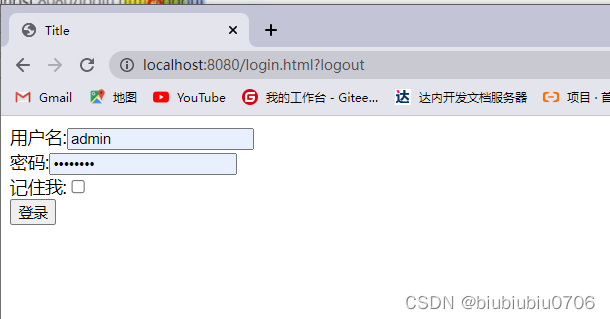 地址栏会有个?logout 其实这就已经退出了,再访问其他页面都会跳转到登录页面