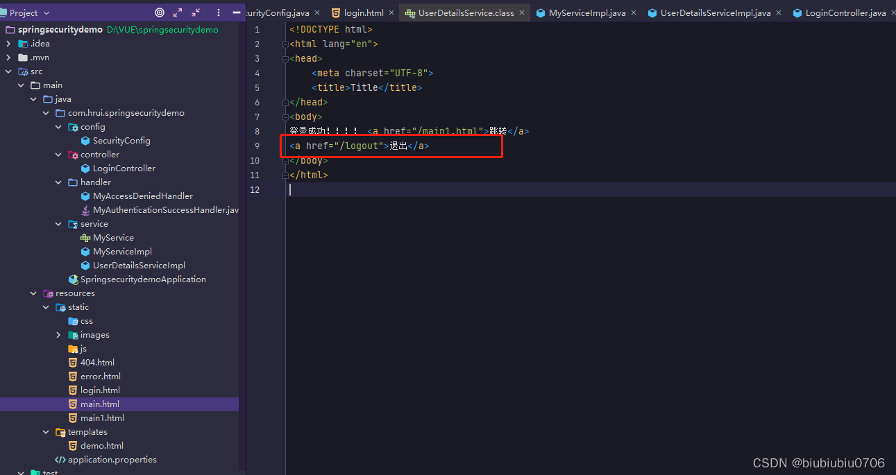 如果html那边不想写/logout