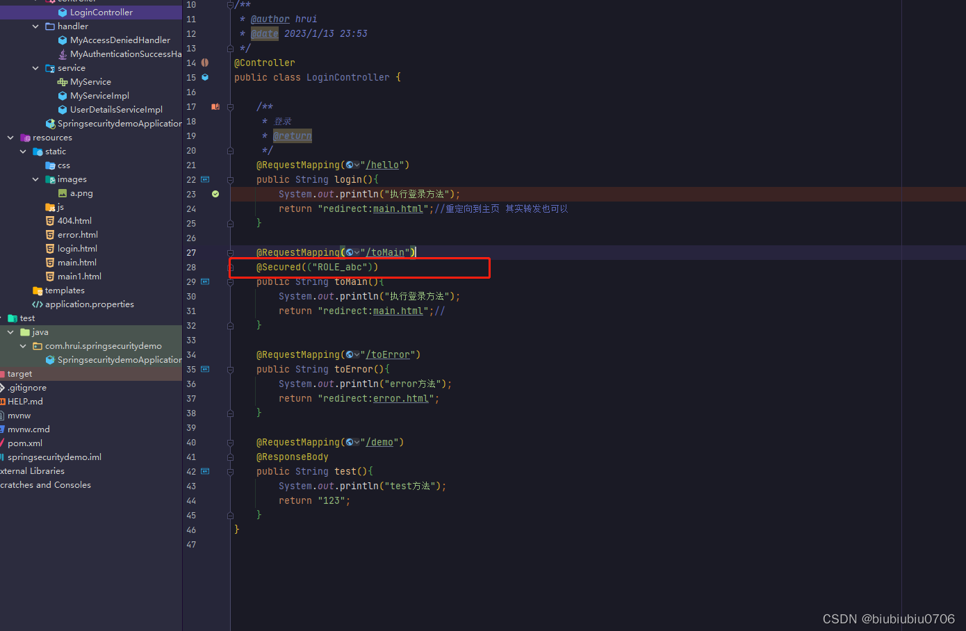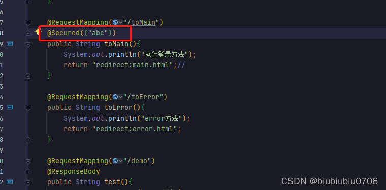 这个@Secured("ROLE_abc")也可以不用里面非加括号 且严格区分大小写,必须写ROLE_