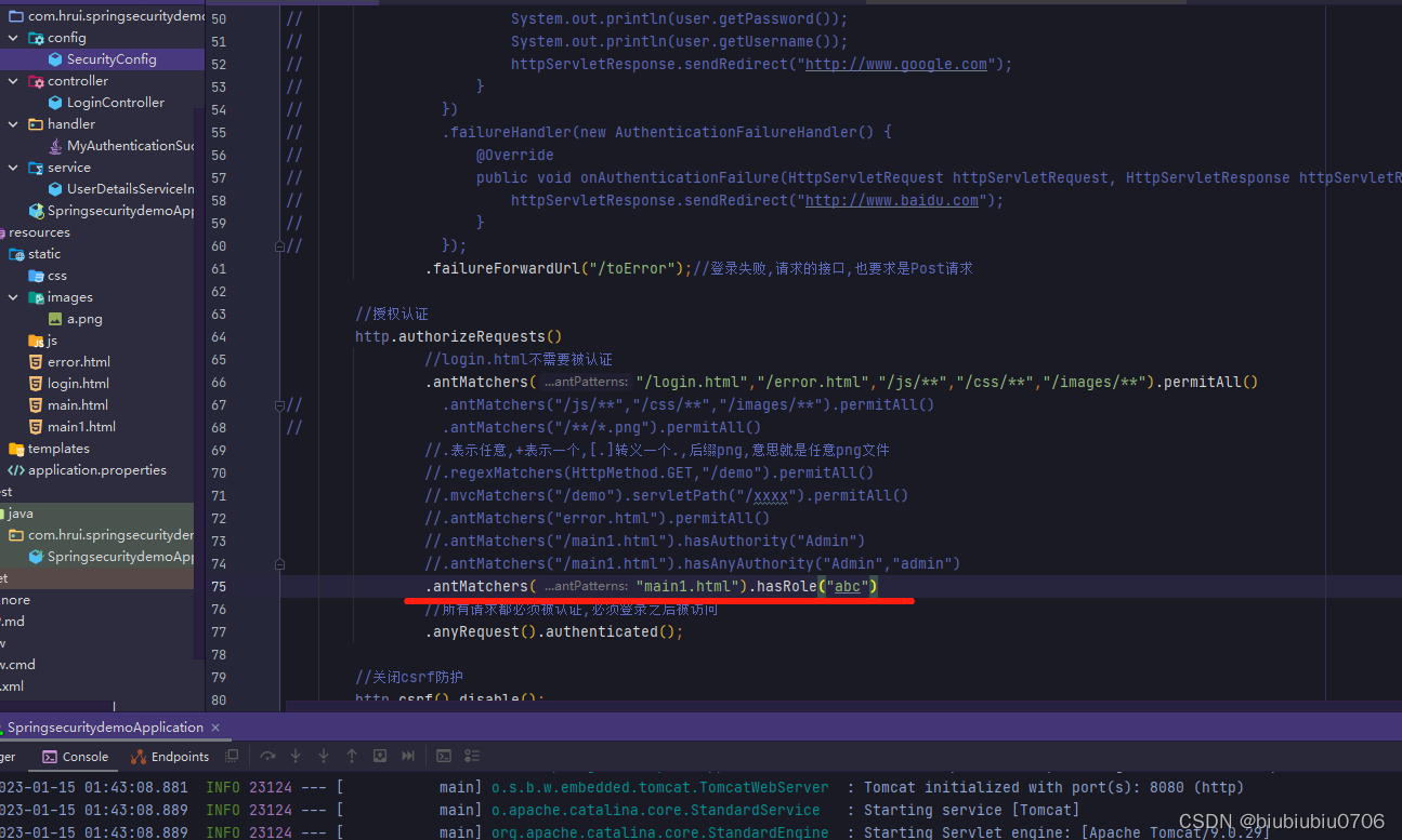 演示 先修改下配置类 就是所有都需要验证,只留登录页 error页面