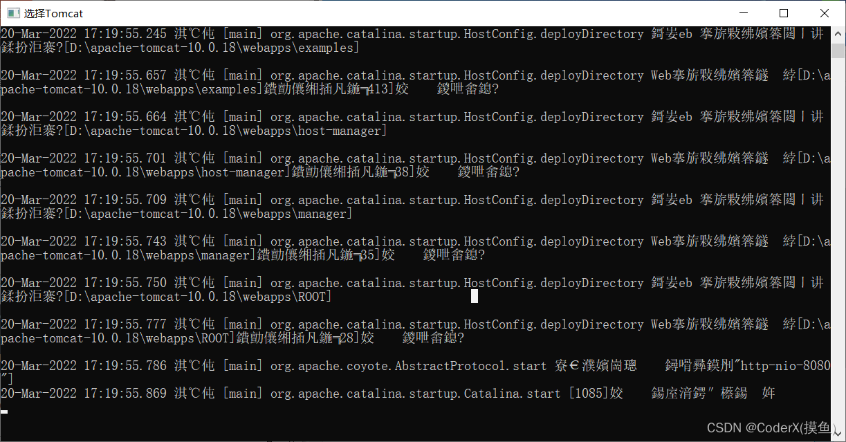 4.运行成功不要关闭窗口(有的电脑会乱码,我在网上试了三种方法都没成功啊,不过都不影响,介意的去百度一下tomcat运行乱码自己试试啊)
