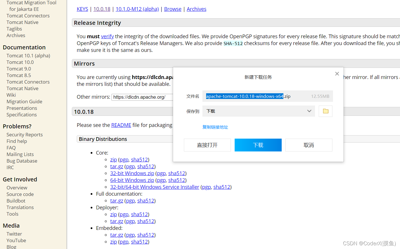 1. 访问apche官网找到并下载对应版本的tomcat:Apache Tomcat® - Welcome!