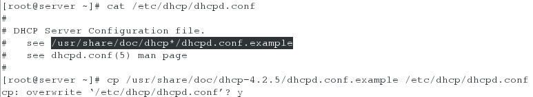 并配置好dhcpd服务的配置文件:cp /usr/share/doc/dhcp*/dhcpd.conf.example /etc/dhcp/dhcpd.conf