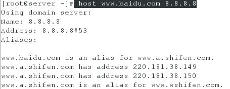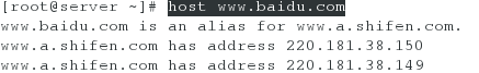 例:ping 百度时,解析到了百度的别名服务器。百度由各 cname=www.a.shifen.com 的别名