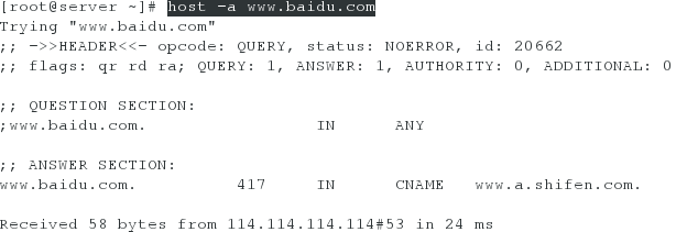 114.114.114.114 接着又到 .com 去查询,而该台及其管理的又仅有 bai.com等,经过比对后发现我们要的是 .baidu.com 的区域,所以这个时候,.com 又告诉 114.114.114.114 说:“你要去管理 .baidu.com 这个区域的主机哪里查询,我有它的 IP”。