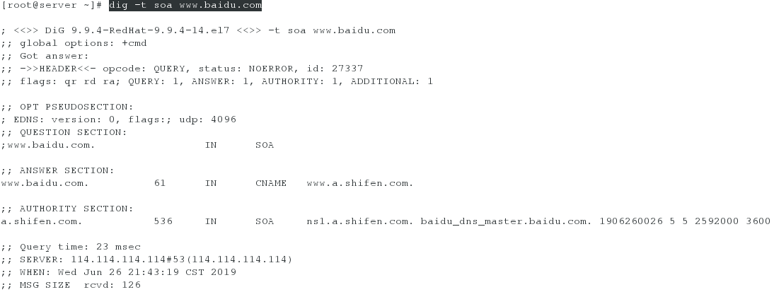等到 114.114.114.114 找到.baidu.com 之后,OK!.baidu.com 说:“没错,这台主机名是我管理的,我跟你说它的 IP 是......”,所以此时 114.114.114 就能够查到 www.baidu.com 的 IP 了。