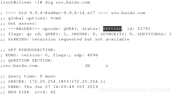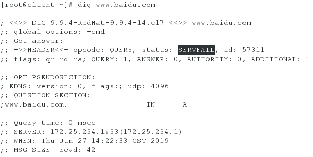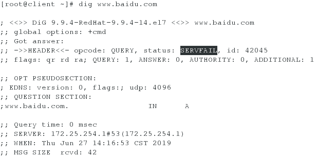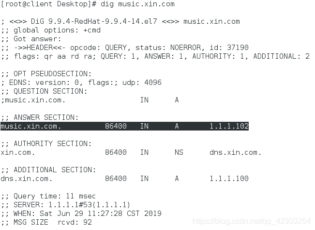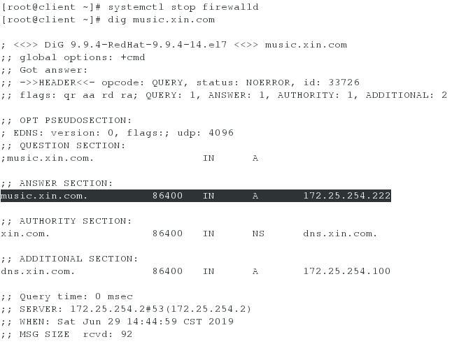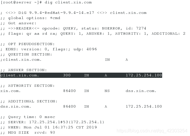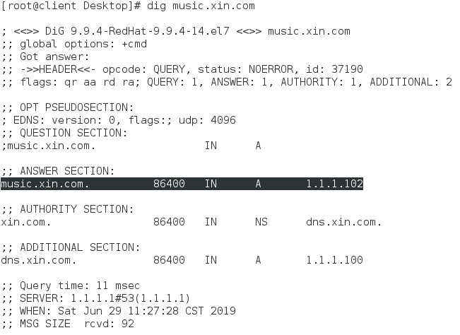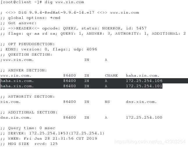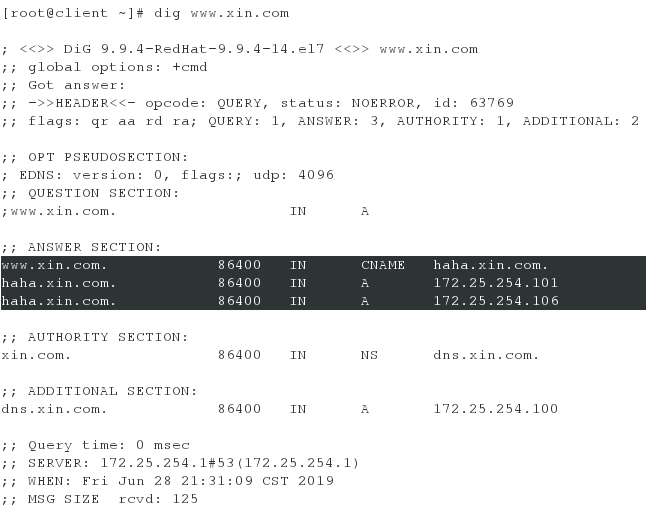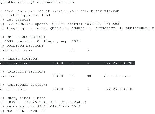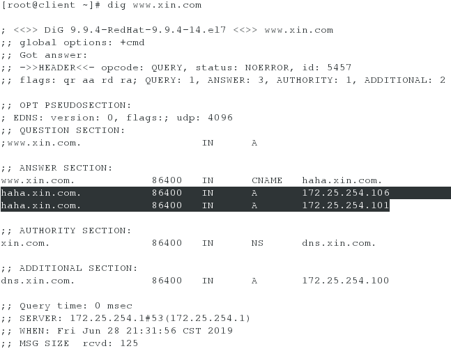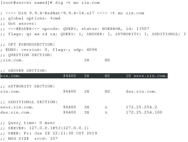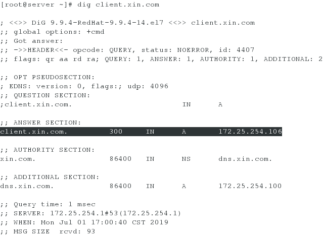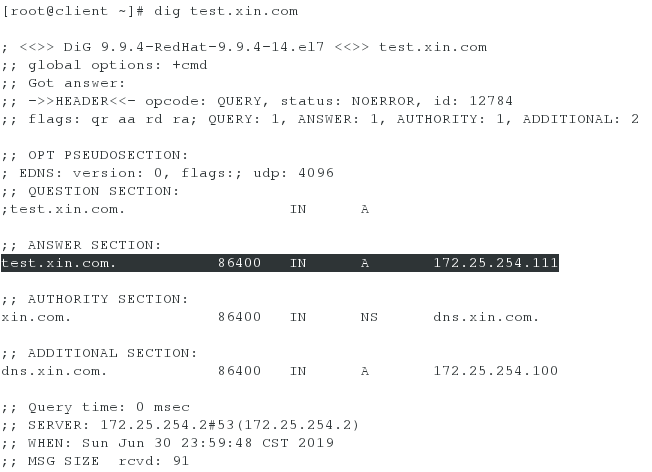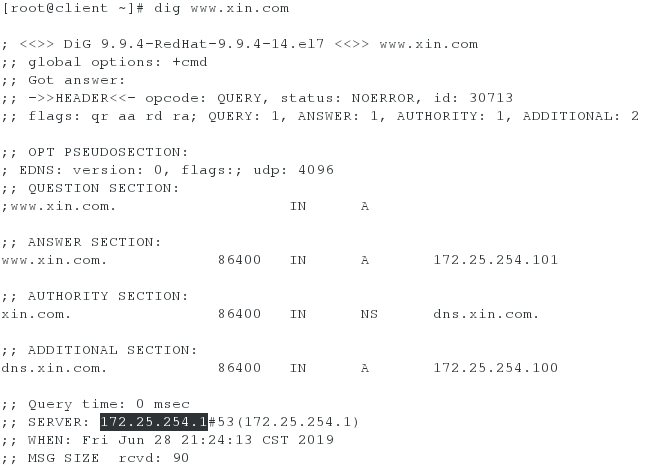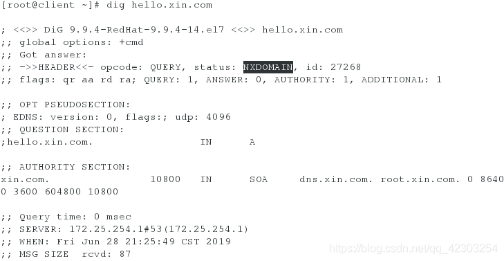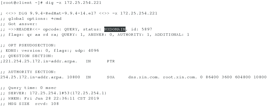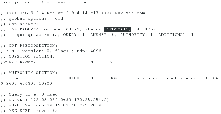 此时,在主dns服务器,dig www.xin.com,会出现NXDOMAIN