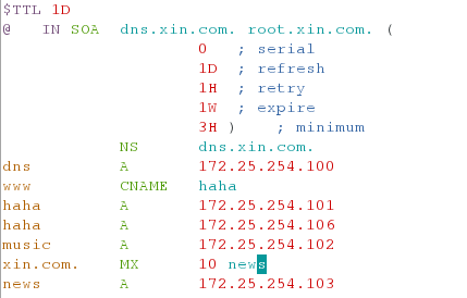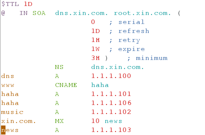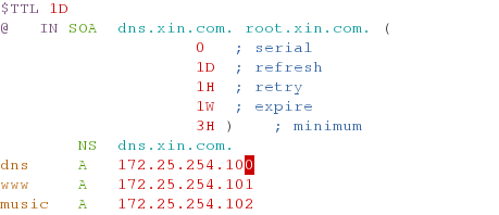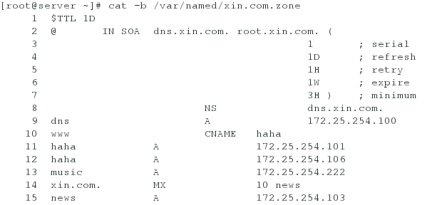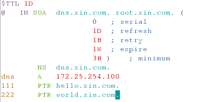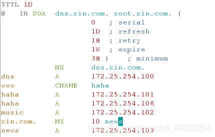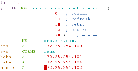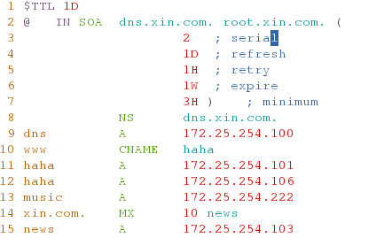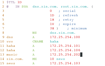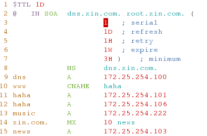 (2)改变主dns服务器的内容(/var/named/xin.com.zone)