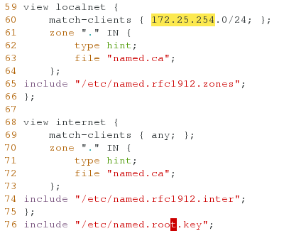 其中41行也可以写成172.25.254.1,但是没有必要,因为是内部网络的dhcp与dns解析的传输,所以回环接口即可。