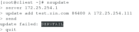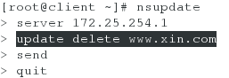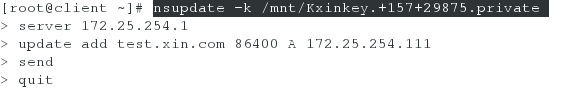 通过私钥来更新主服务器数据:nsupdate -k *.private