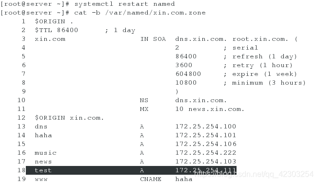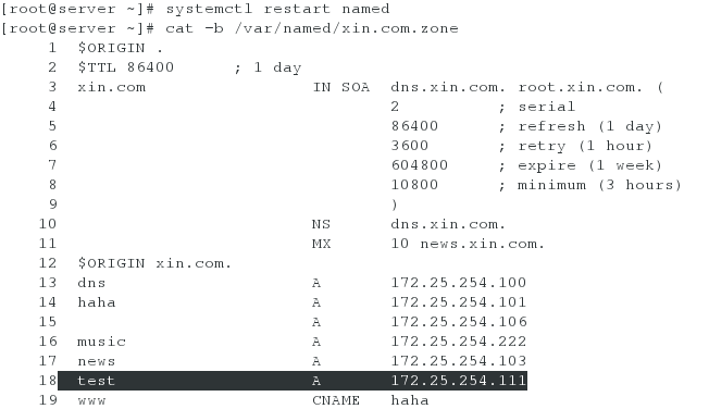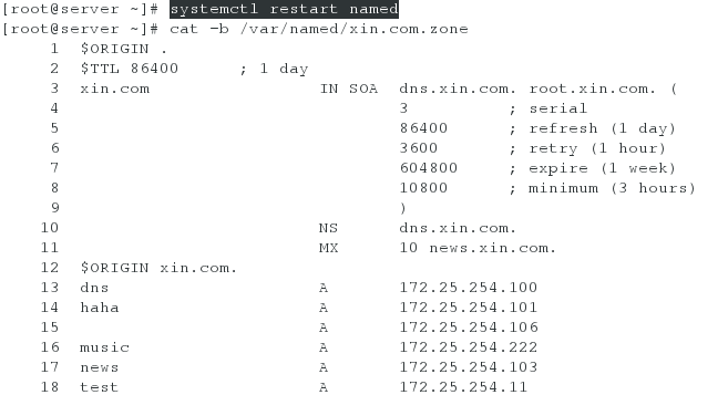 重启服务之后,/var/named/xin.com.zone文件已经更新