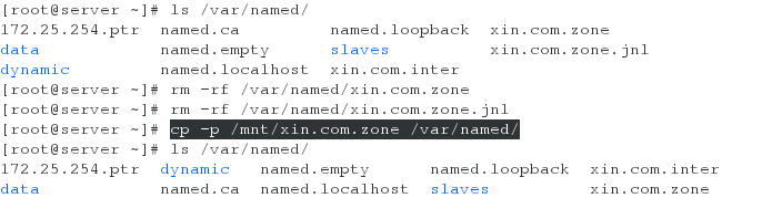 在进行实验之前,先备份/var/named/xin.com.zone文件到/mnt目录(为后续别的实验做准备)