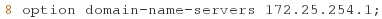 【7】、在文件的末尾加入下面的内容(通过man 5 dhcpd.conf查看帮助文档:通过vim的查找命令(/dns),来查找)