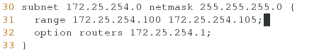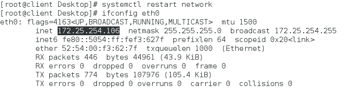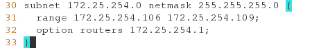 修改dhcp给定的IP段为172.25.254.106 172.25.254.109,并重启服务