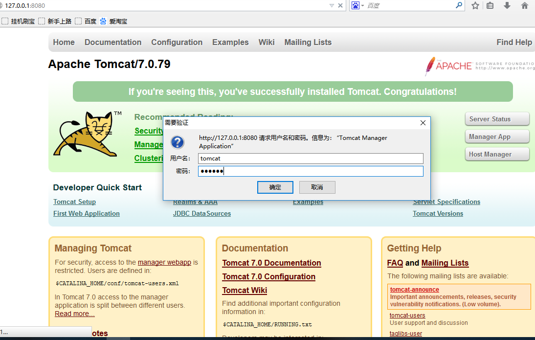 首先设置代理,注意Tomcat的默认端口为8080,不要和代理的端口冲突了。首先打开tomcat,点击manager app 输入管理员用户名密码,这里随意输入用户名tomcat 密码123456,