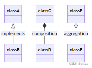 - 通过关系定义,同时定义了两个类以及它们之间的关系。例如,Vehicle <|-- Car。