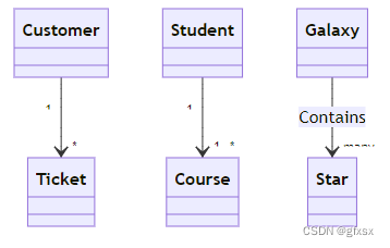 classDiagramCustomer "1" --> "*" TicketStudent "1" --> "1..*" CourseGalaxy --> "many" Star : Contains