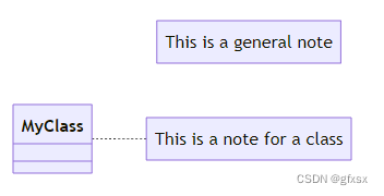 classDiagramnote "This is a general note"note for MyClass "This is a note for a class"class MyClass{}