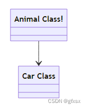 classDiagramclass `Animal Class!`class `Car Class``Animal Class!` --> `Car Class`