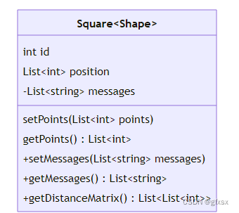 class Square~Shape~{int idList~int~ positionsetPoints(List~int~ points)getPoints() List~int~