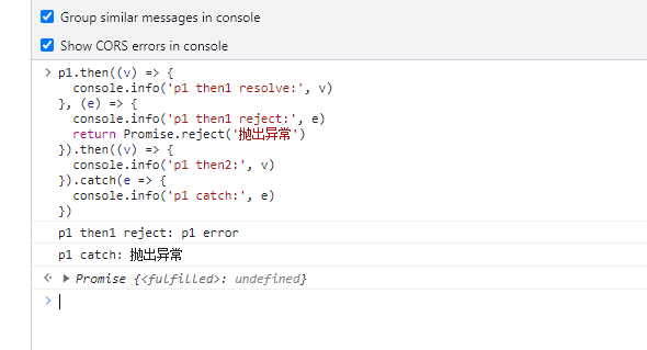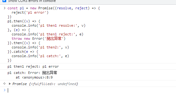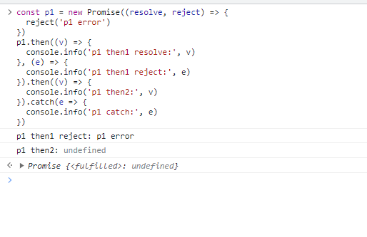 }, (e) => {console.info('p1 then1 reject:', e)throw new Error('抛出异常')