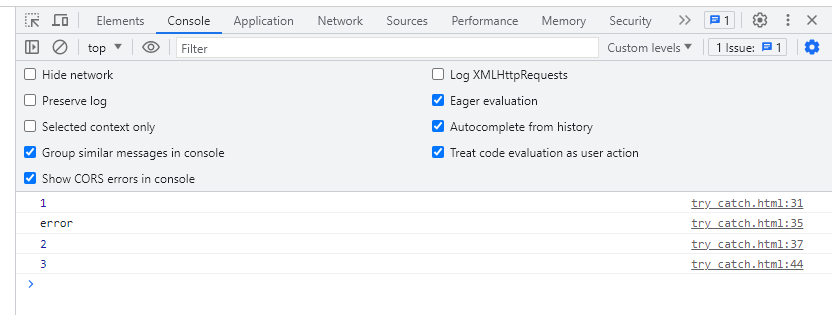 如果没有try…catch会中断执行吗?如果没有try…catch会控制台报错吗?