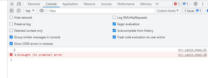 单个的try…catch就上面这些,接下来就是promise.catch与try…catch的组合了