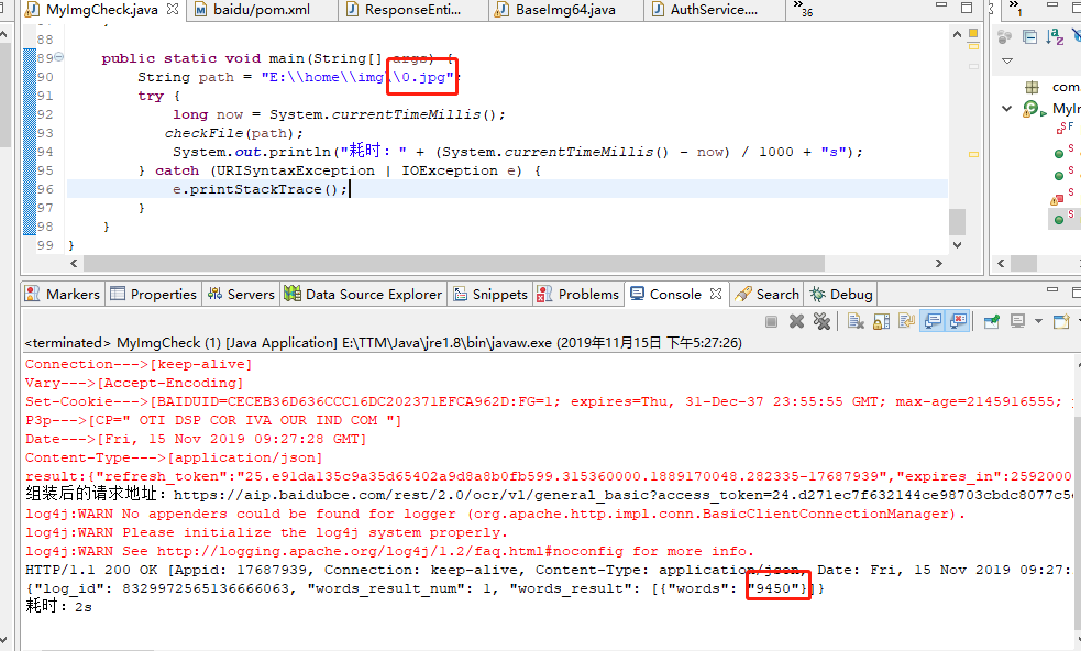 1、请确认百度开发者中心图文识别接口已经调用成功。
