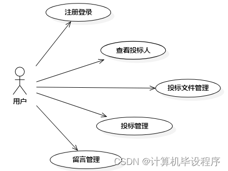 用户:注册登录、查看投标人、投标文件管理、投标管理、留言管理。