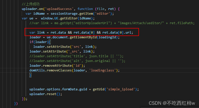 更换接口以及参数后,往下找到uploadSuccess监听函数: