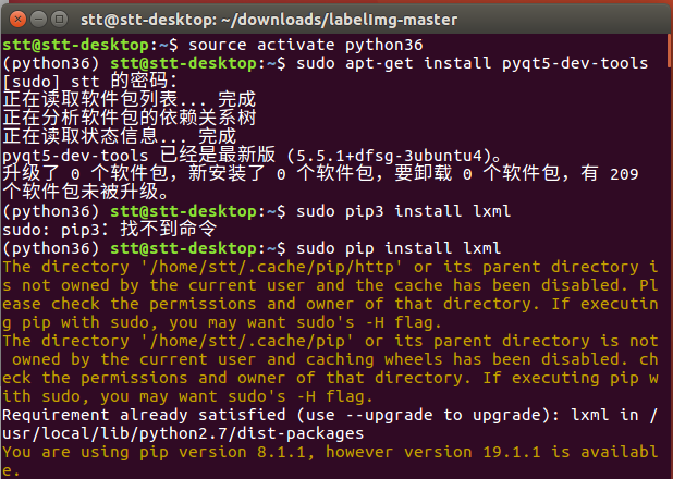 所以 sudo apt-get install python3-pip 安装成功之后再安装lxml依旧报错