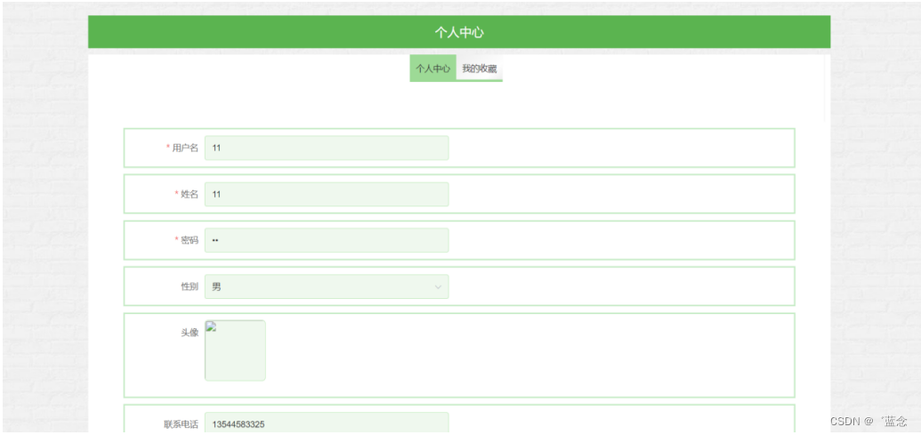 个人中心:在个人中心页面可以对个人中心和我的收藏进行详细操作;如图5-5所示: