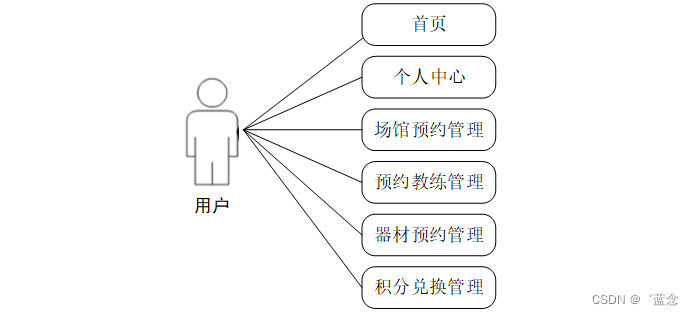 用户使用本系统涉到的功能主要有个人中心、教练管理、新起点球馆预约、请假申请等功能。用户用例如图3-2所示。
