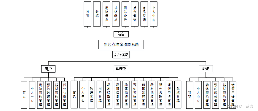 考虑到实际生活中在新起点球馆预约管理方面的需要以及对该系统认真的分析,将系统权限按进行划分。