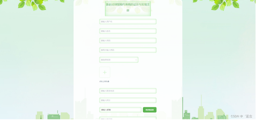 用户注册:在用户注册页面的输入栏中输入用户注册信息进行注册操作,系统注册页面如图5-2所示: